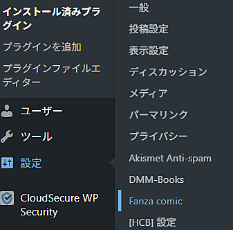 そうするとサイドバーの設定画面に、インストールしたプラグインの項目が出現します。